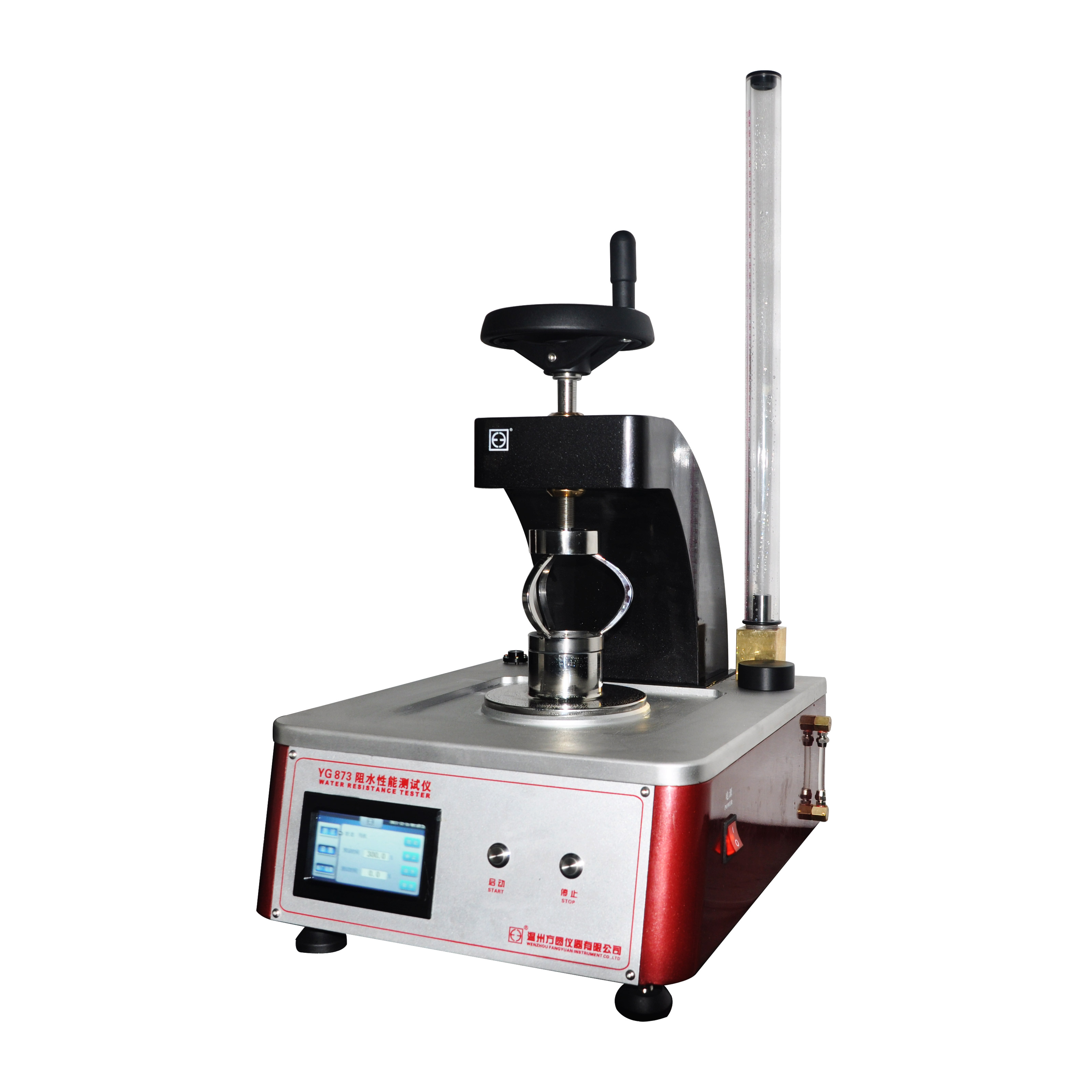 YG812DQ滲水性測定儀 AATCC127-2003、GB/T4744、ISO 811-1981、JIS L1092-1998、DIN EN 20811-1992等標準。